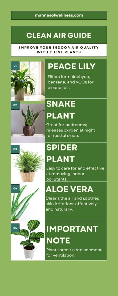 Note: While helpful, plants aren’t a replacement for proper ventilation or filtration.